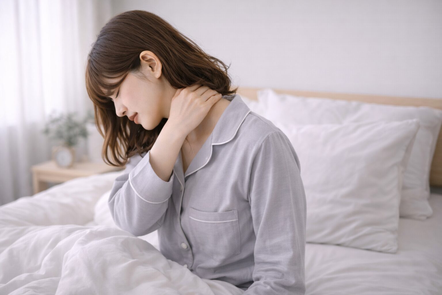ここでは、布団の中〜起き上がってすぐにできる、首にやさしいケアを3つご紹介します。