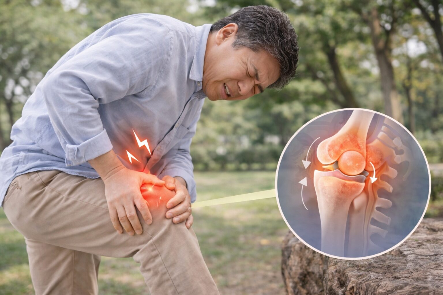 しゃがみにくい。正座ができない。階段を下りる時に膝がうまくたためない。