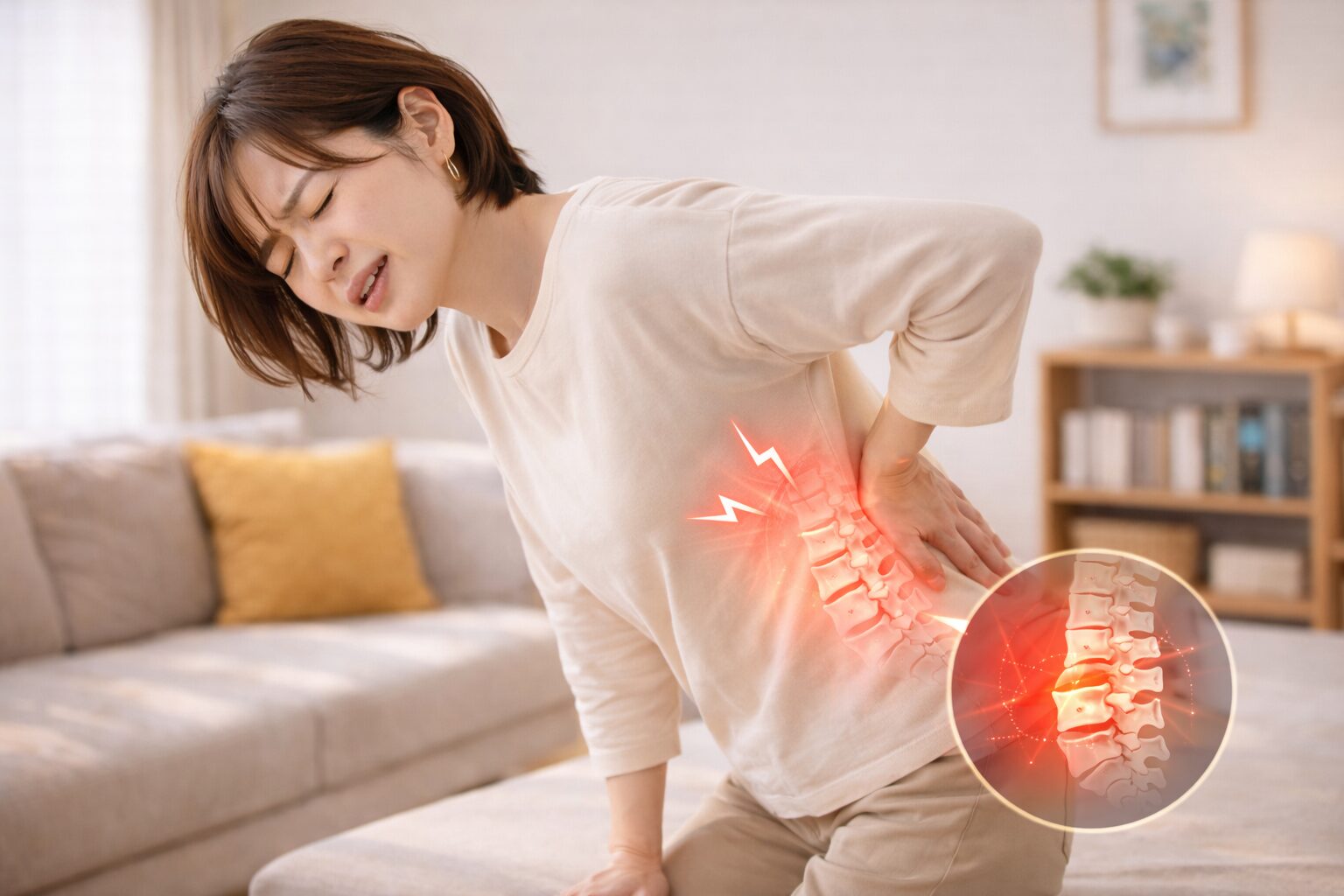 1. 腰椎と骨盤の位置関係が崩れ、特定の部分に負担が集中する